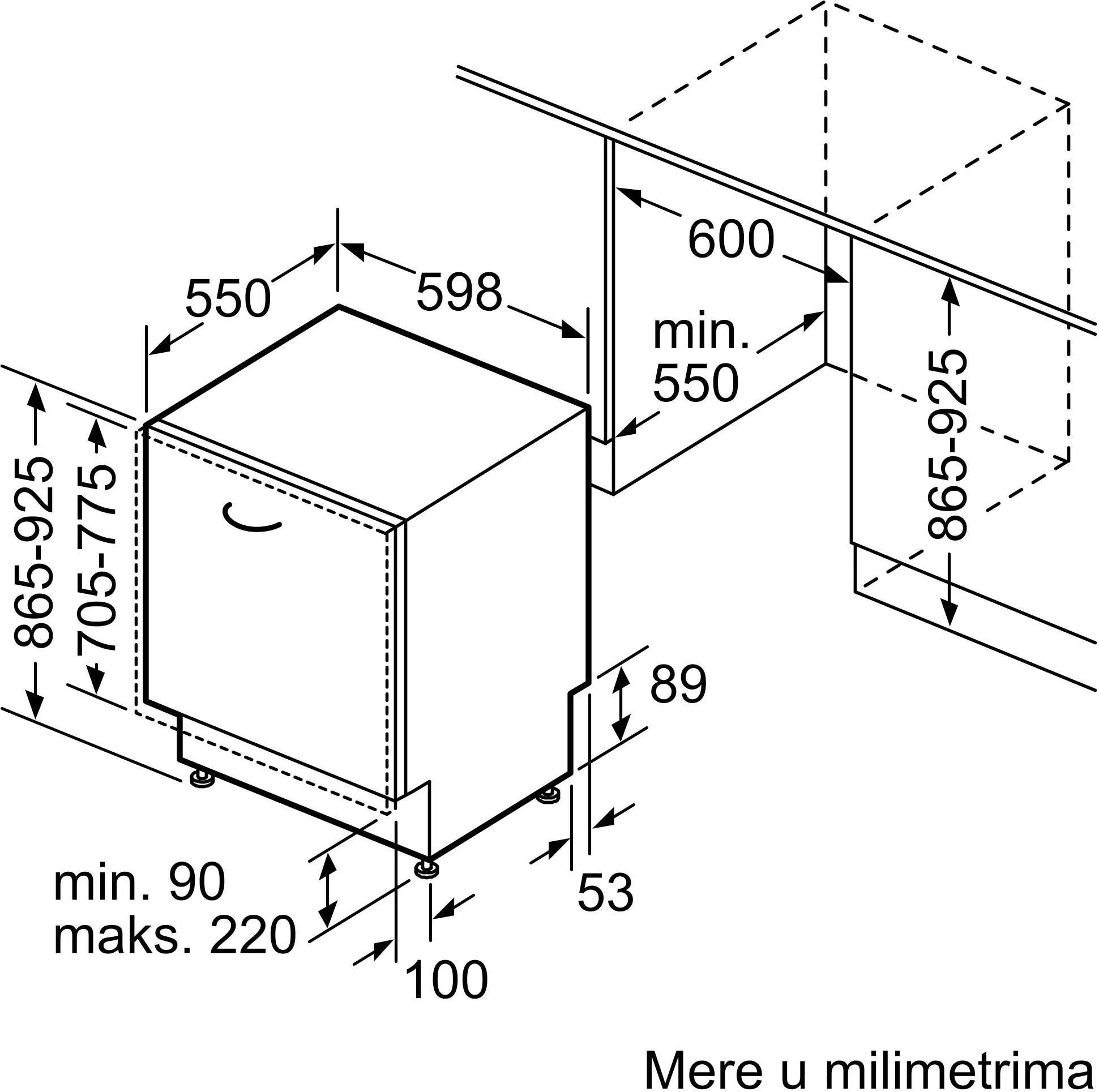 Высота ниши для встраивания (мин)