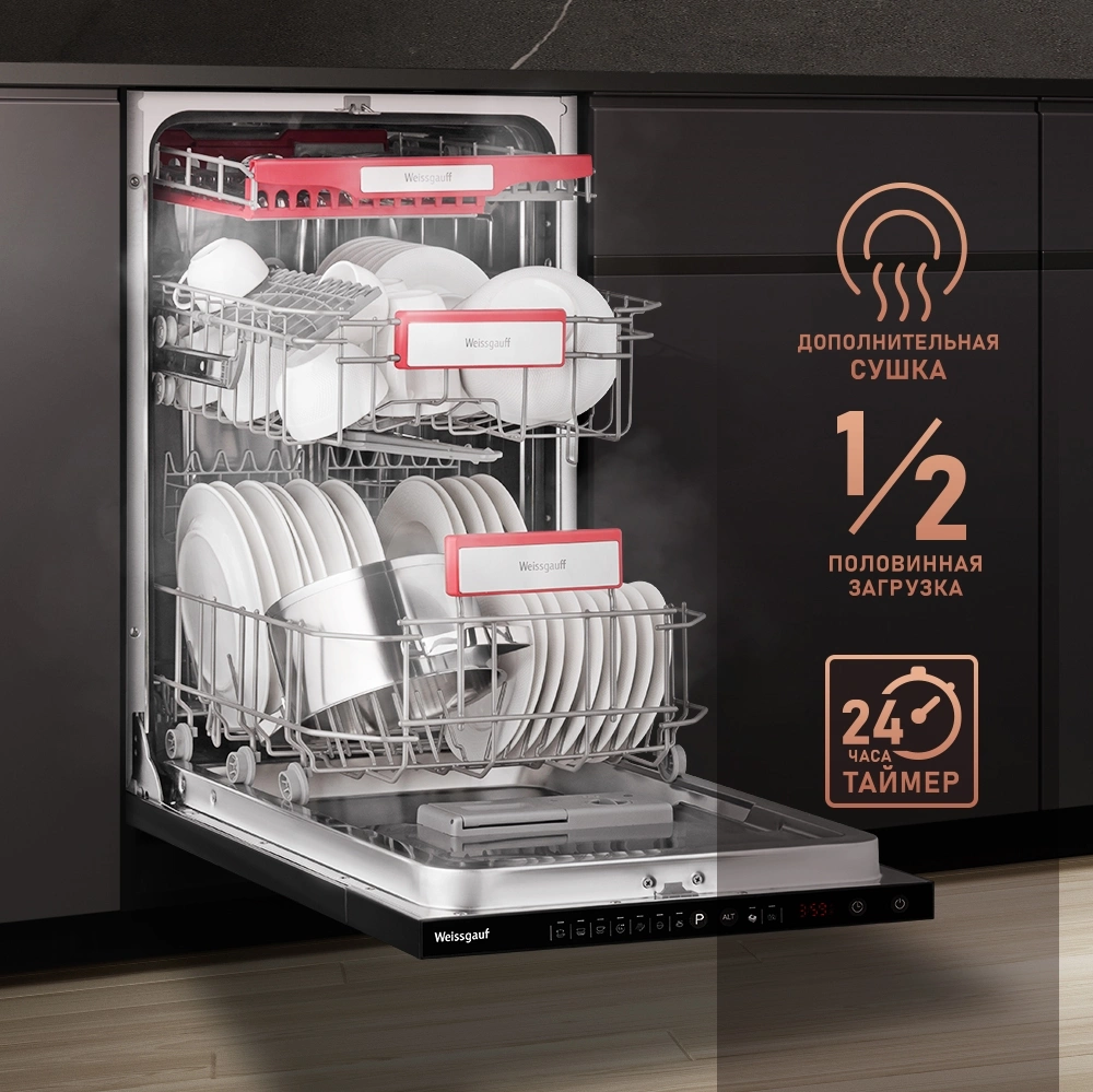 луч на полу, наличия ополаскивателя, наличия соли