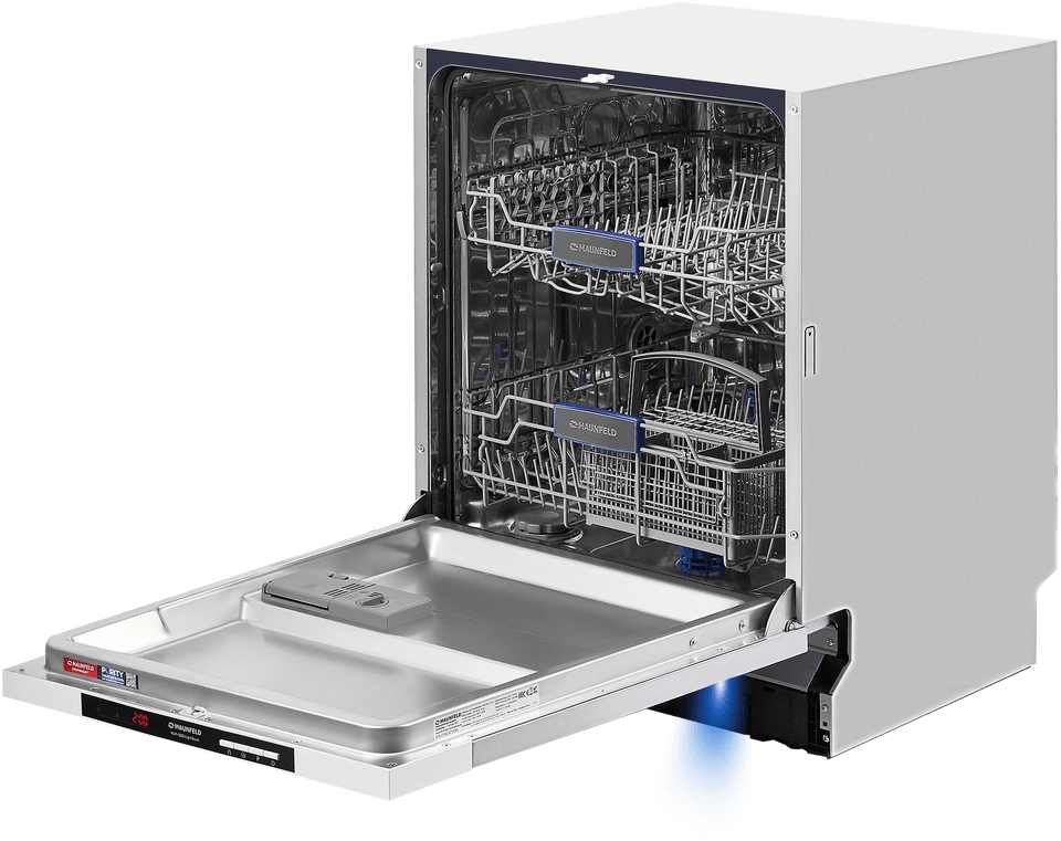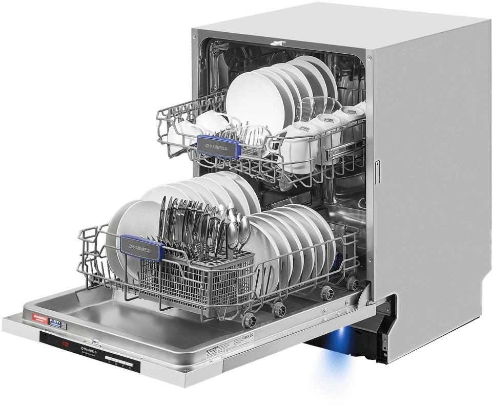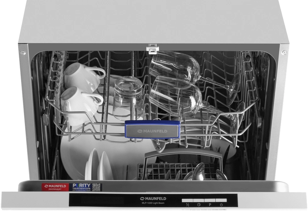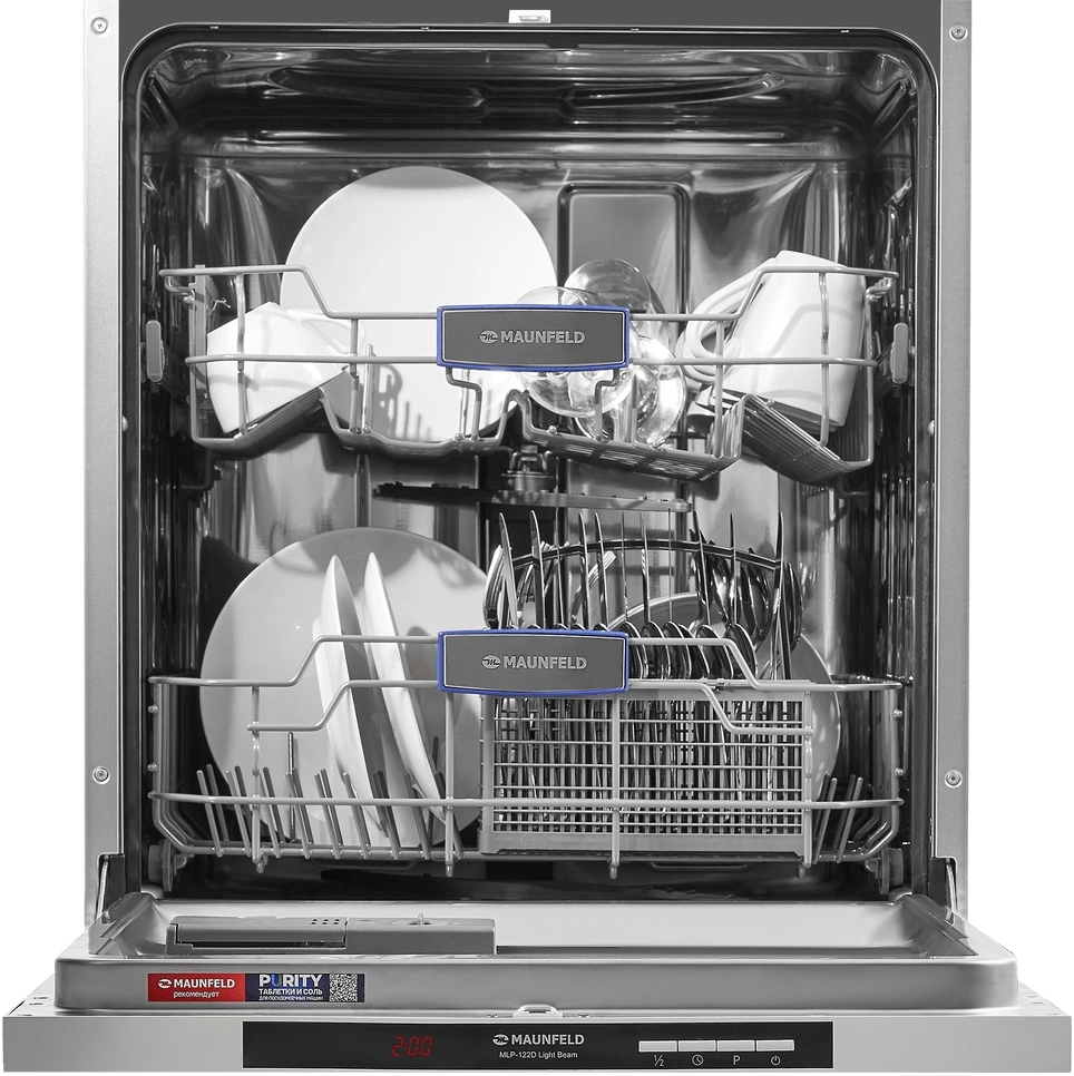 звуковой сигнал, луч на полу, наличия ополаскивателя, наличия соли