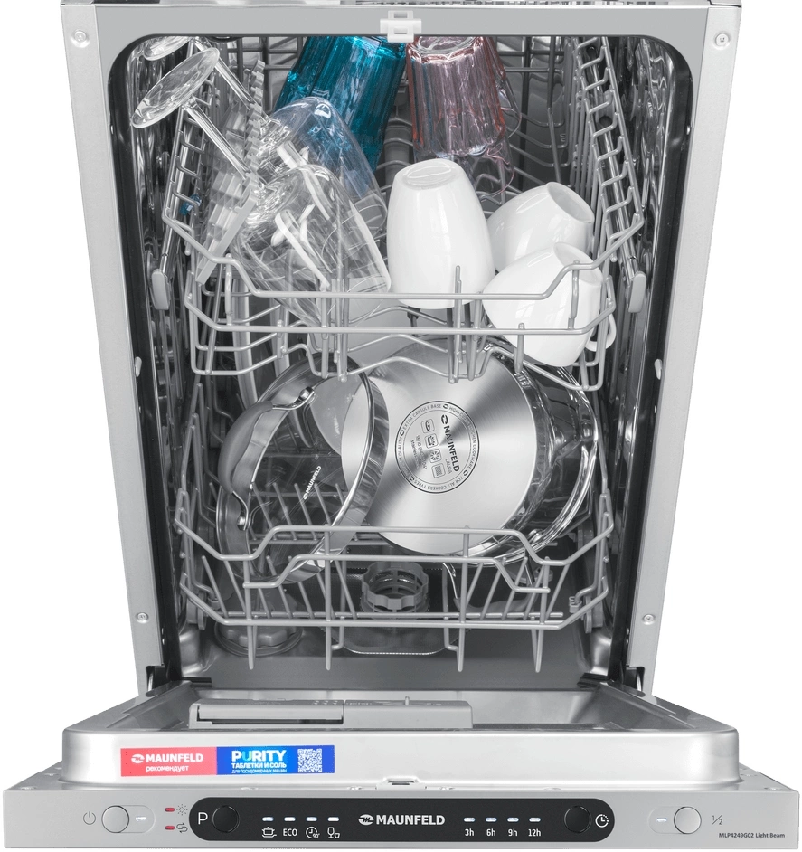 звуковой сигнал, луч на полу, наличия ополаскивателя, наличия соли