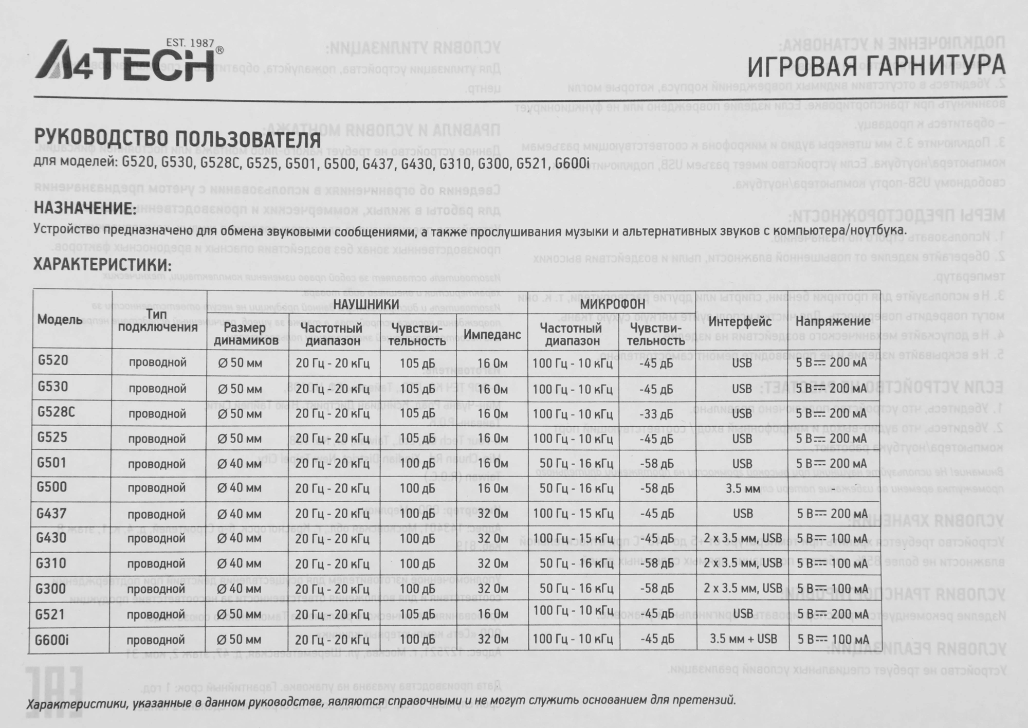 Характеристики