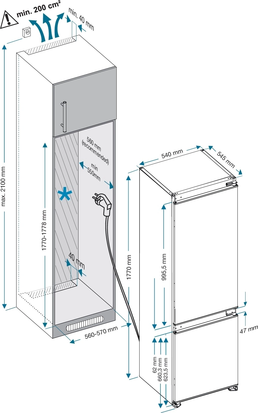 Высота ниши для встраивания (макс)